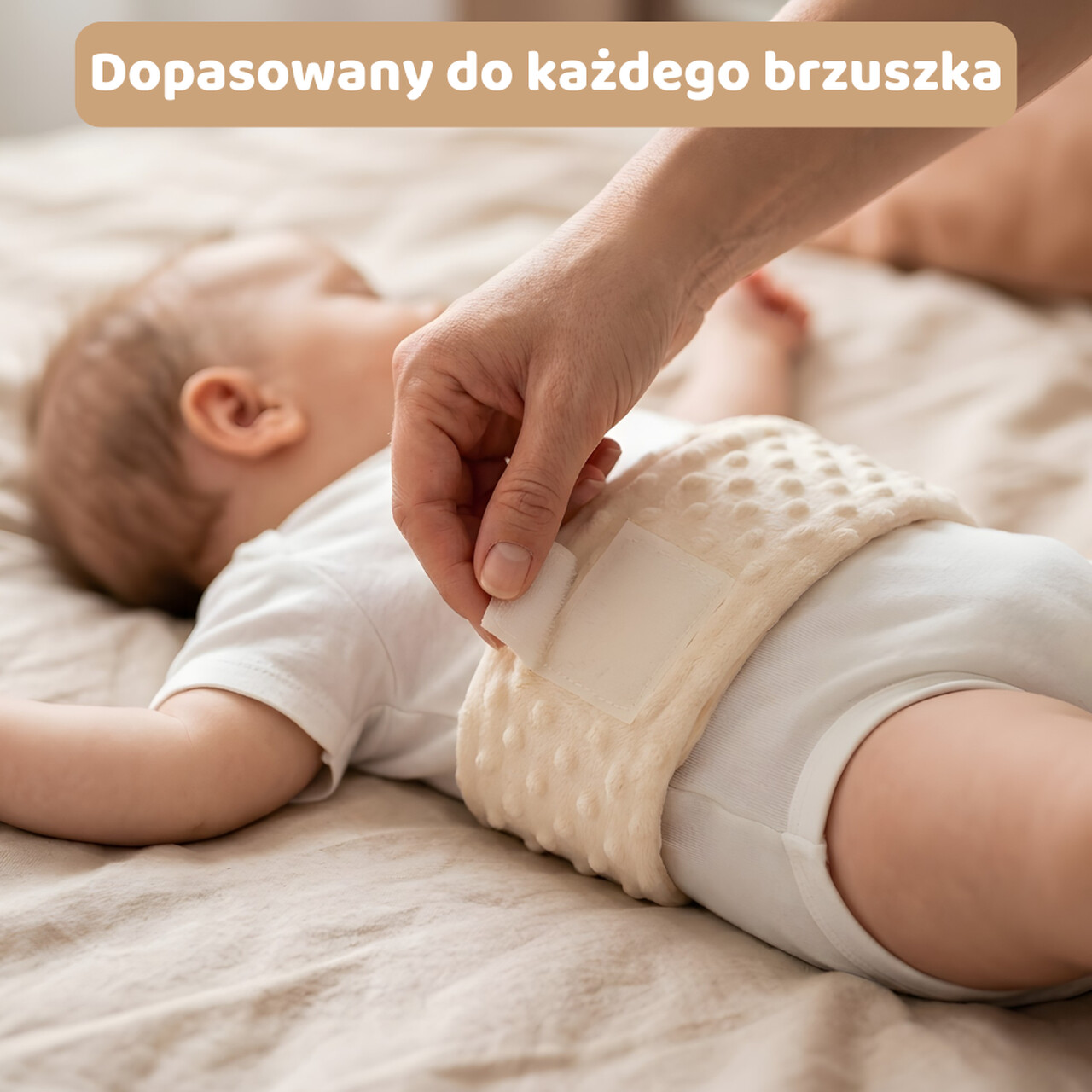 Ten uroczy pas to bezpieczny kompres, który dzięki połączeniu ciepła i lekkiego ucisku naturalnie łagodzi wzdęcia oraz bóle brzuszka.