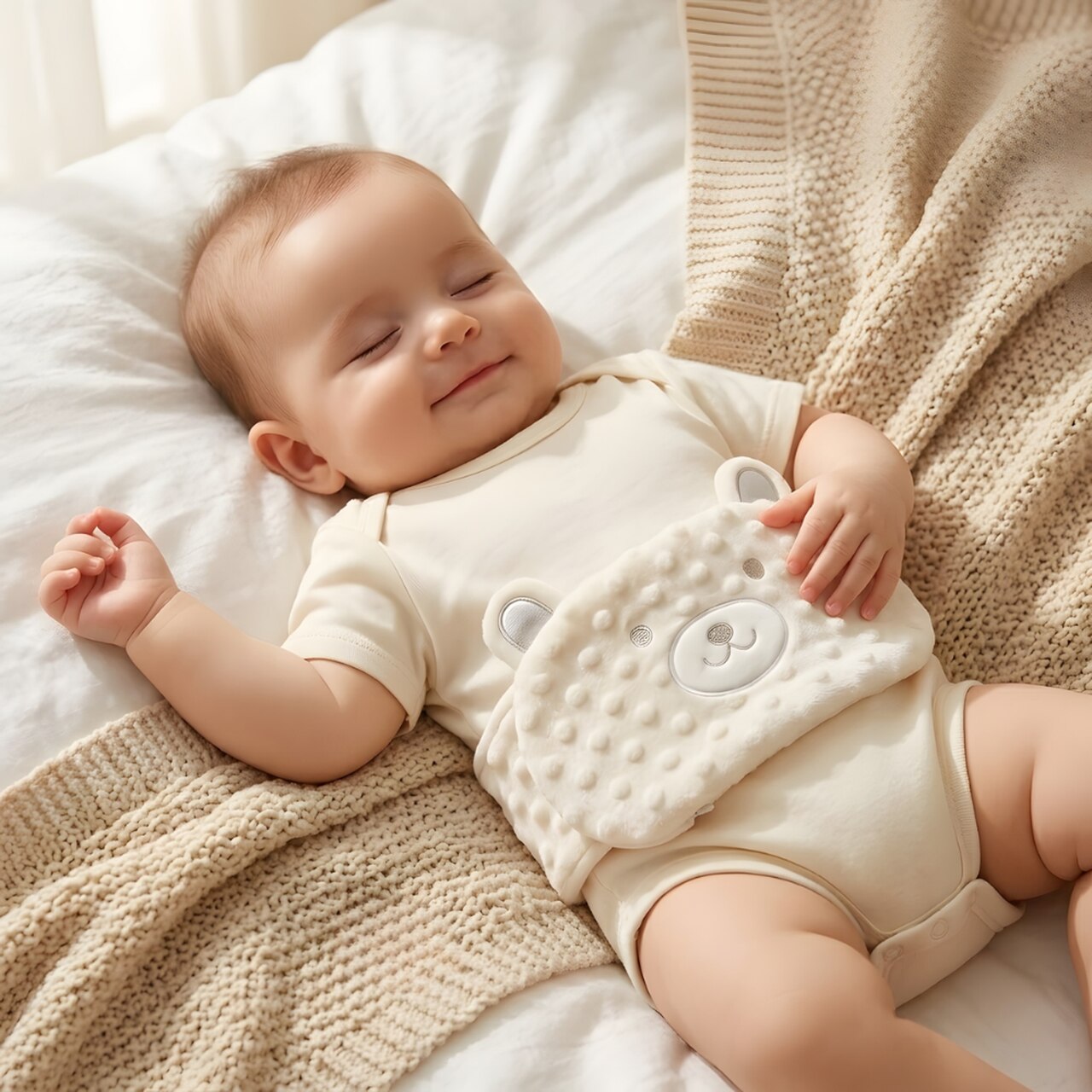 TulBrzusio łączy dwie sprawdzone metody: kojące ciepło oraz delikatny mikro-ucisk, który mechanicznie ułatwia odprowadzanie gazów i rozluźnia mięśnie. W przeciwieństwie do środków farmakologicznych, działa natychmiastowo i naturalnie, nie obciążając układu pokarmowego niemowlęcia zbędną chemią.